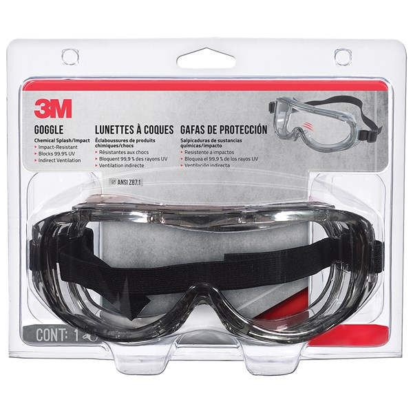3M 91252 SAFETY GOGGLES CHEMICAL SPLASH AND IMPACT CLEAR