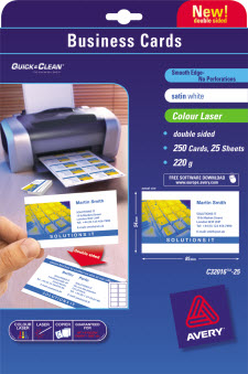 AVERY 959079 C32016 QUICK CLEAN BUSINESS CARD 220GSM 85 X 54MM SATIN WHITE PACK 250