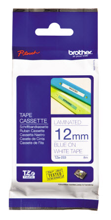BROTHER TZE-233 LAMINATED LABELLING TAPE 12MM BLUE ON WHITE