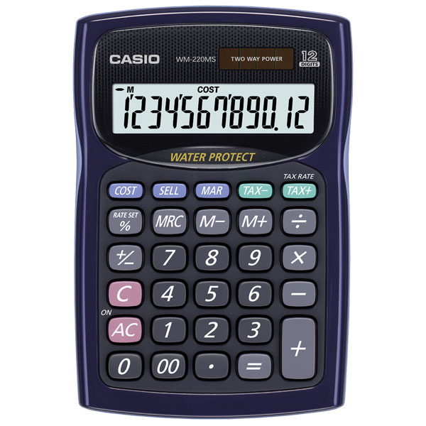 CASIO DESKTOP CALCULATOR WM220MSBU 12 DIGIT WATER PROTECTED/DUST PROOF