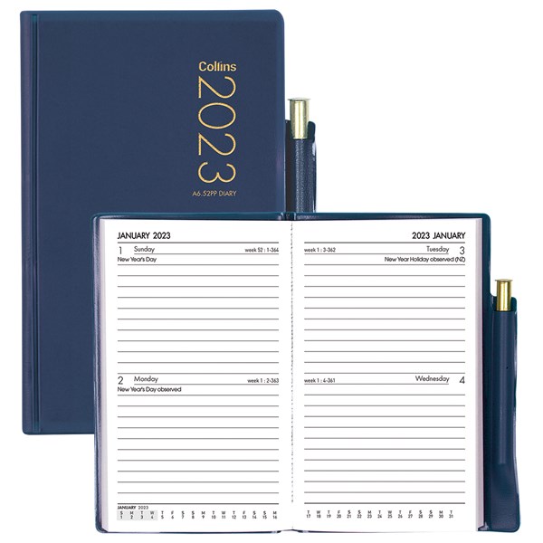 COLLINS DIARY POCKET PENCIL A72PP NAVY 2 DAYS PER PAGE PVC EVEN YEAR