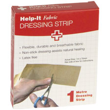 HELP-IT DRESSING STRIP FABRIC IN A POLY BAG W72MM X L1M FLESH