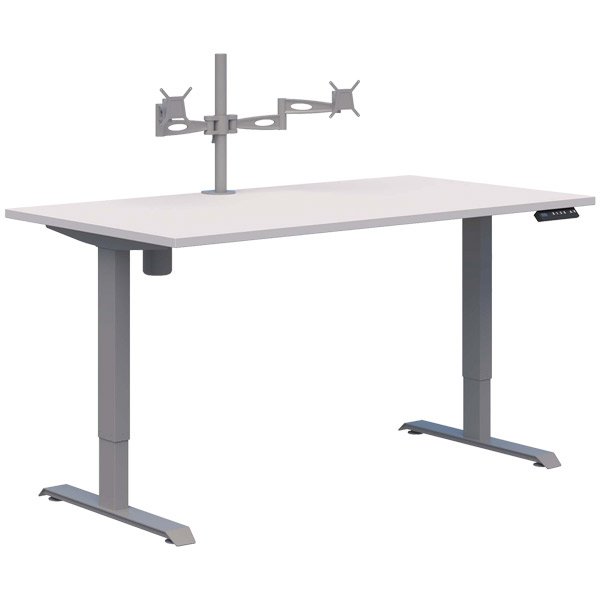 DUO II ELECTRIC DESK W1500 X D800 X H695-1145MM SILVER FRAME SNOWDRIFT WITH METALICON DOUBLE MONITOR ARM SILVER