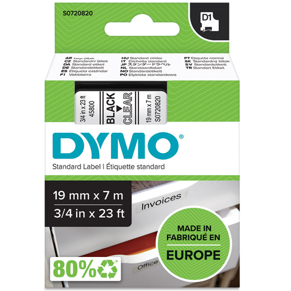 DYMO 45800 D1 LABELLING TAPE 19MM X 7M BLACK ON CLEAR