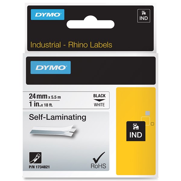 DYMO SD1734821 RHINO INDUSTRIAL TAPE SELF LAMINATING 24MM BLACK ON WHITE