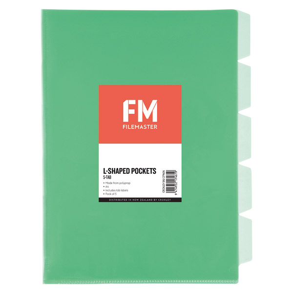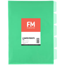 FM L-SHAPED POCKET 5 TAB A4 GREEN PACK 5