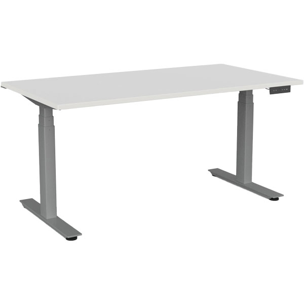KNIGHT AGILE HEIGHT ADJUSTABLE DESK ELECTRIC 3 STAGE W1500 X D800MM X H650-1290MM SILVER FRAME WHITE TOP