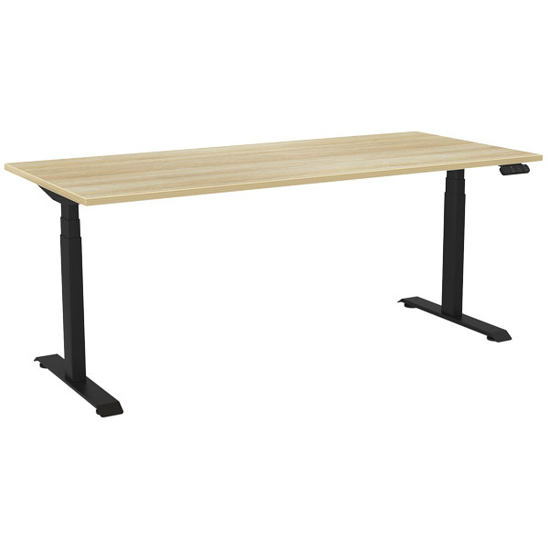 KNIGHT HAVEN ELECTRIC DESK W1800 X D800 X H630-1280MM BLACK FRAME ATLANTIC OAK TOP