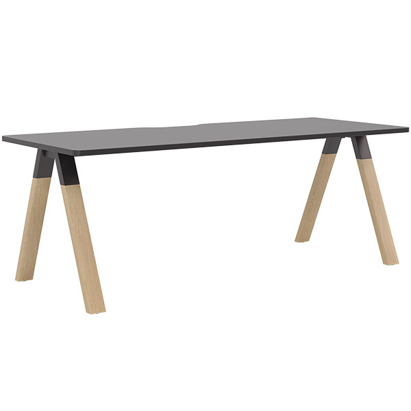 Ligna legs feature a black powdercoated connector bracket and solid oak legs with a natural timber finish
