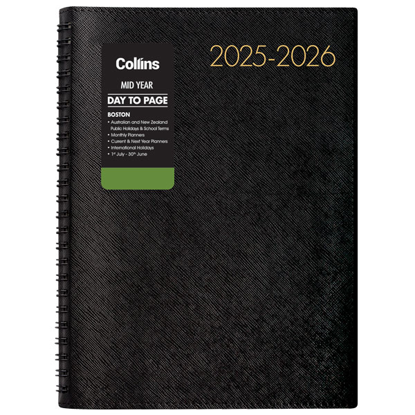 Boston A5 Mid Year diary.Include extensive info sectionsDated from 1 July-30 June70% FSC MixWiro bound1 day per page