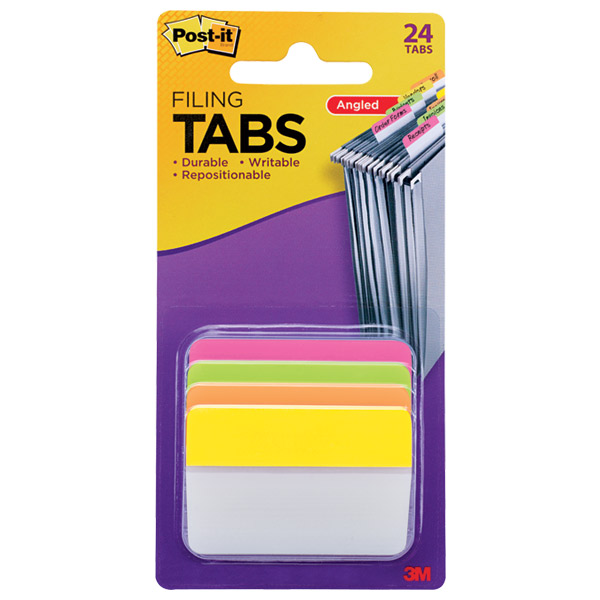 POST-IT 686-PLOY DURABLE FILING TABS SOLID 50 X 38MM BRIGHT ASSORTED PACK 24