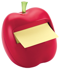 Pack includes apple-shaped dispenser and 50-sheet pad of canary yellow pop-up notes