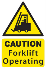 QSI SAFETY SIGN W340 X L240MM WARNING FORKLIFTS OPERATING