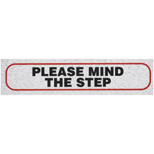 ROSEBUD SELF ADHESIVE SIGN ALUMINIUM W170 X L40MM PLEASE MIND THE STEP