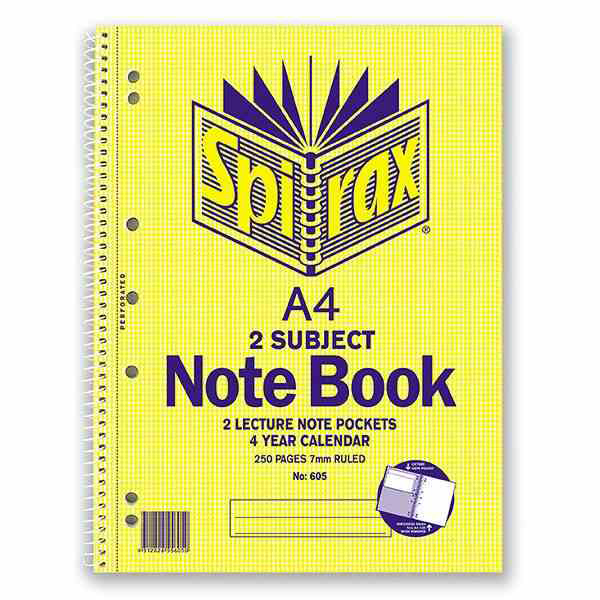 SPIRAX 605 2 SUBJECT NOTEBOOK 7MM RULED SPIRAL BOUND 250 PAGE A4